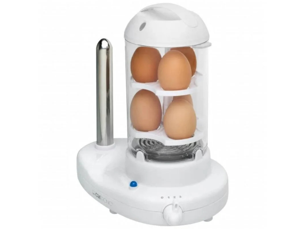 Máquina de hacer Perritos Calientes con accesorio para cocedero de huevos. De 1 a 14 salchichas. Cocine hasta 6 huevos. Soporte para panecillos en acero inoxidable calefactado. Depósito de vapor transparente y desmontable con base antiadherente.